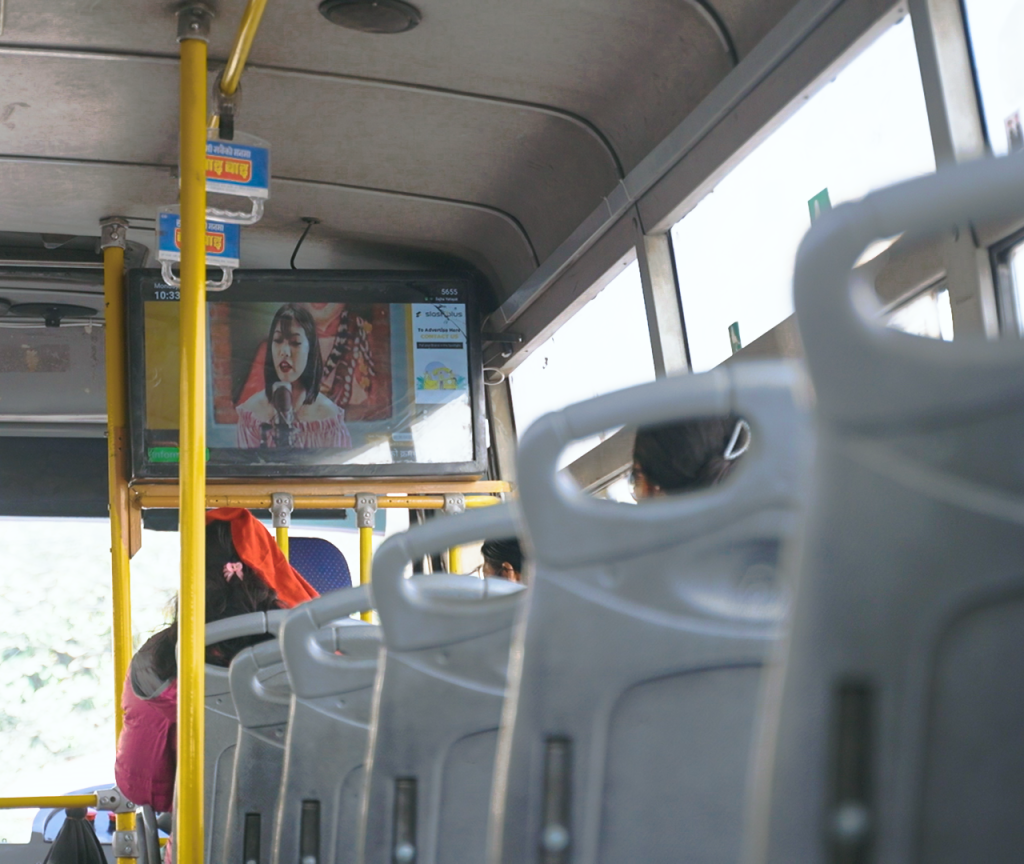 DigiBuzz is a digital advertising platform that displays video and image ads on TV screens installed inside over 200 public buses in Kathmandu, including Sajha and Mahanagar Yatayat.